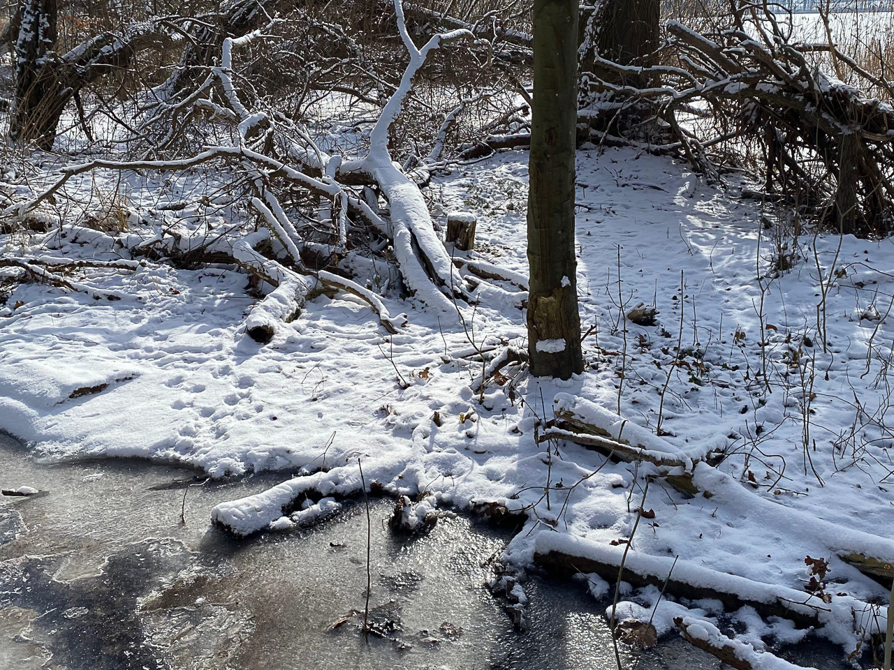 Die erste Tour führte von Wuthenow nach Gnewikow und zurück. Noch herrschten winterliche Bedingungen, als unsere Wanderleiterin Karin Klotz die Gruppe von 24 Wanderinnen und Wanderer begrüßte. Der Weg verlief direkt am Ufer des Ruppiner See entlang, dessen Oberfläche noch zugefroren war. Die Sonne spiegelte sich auf dem Eis, als hätte jemand tausende kleine Diamanten verstreut.