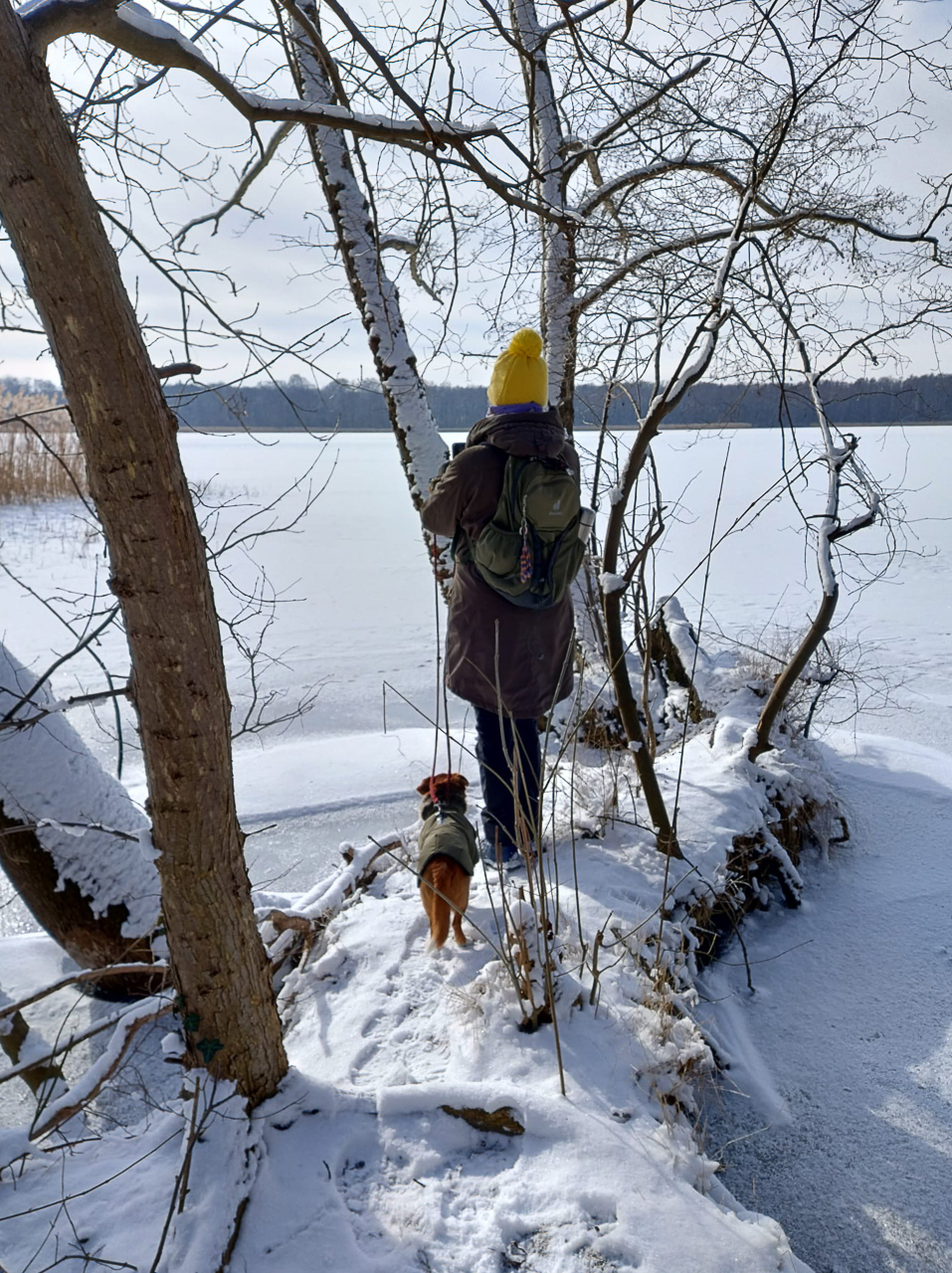 Dank der klaren Winterluft boten sich beeindruckende Blicke auf das gegenüberliegende Ufer. Besonders markant ragte der „Rote Max“ des Krankenhauses Neuruppin in den Himmel – ein vertrauter Anblick, der aus dieser Perspektive besonders interessant wirkte. Dazu gesellten sich zahlreiche Wasservögel, die offenbar ebenfalls die ruhige Winterstimmung genossen.