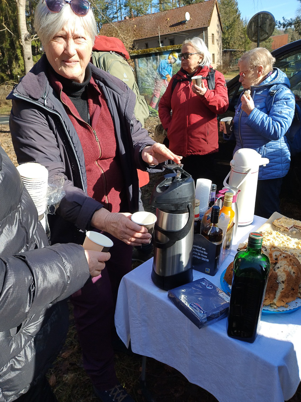 Bereits der Auftakt der Wanderung war besonders: Zwei Geburtstagskinder, Jutta Kaiser und Sabine Knoll, überraschten die Gruppe mit selbstgebackenem Kuchen und Getränken. Es wurde gesungen, gelacht und angestoßen – eine fröhliche Geburtstagsrunde unter freiem Himmel. Besser kann eine Wanderung kaum beginnen.