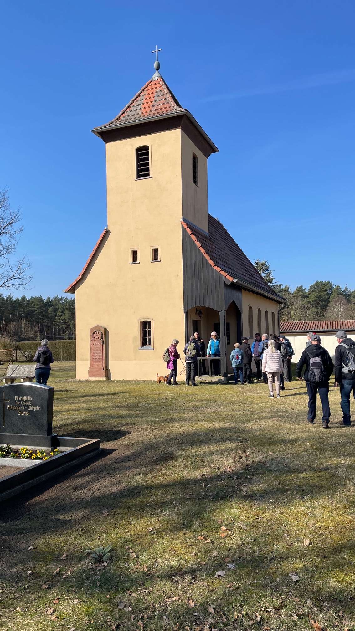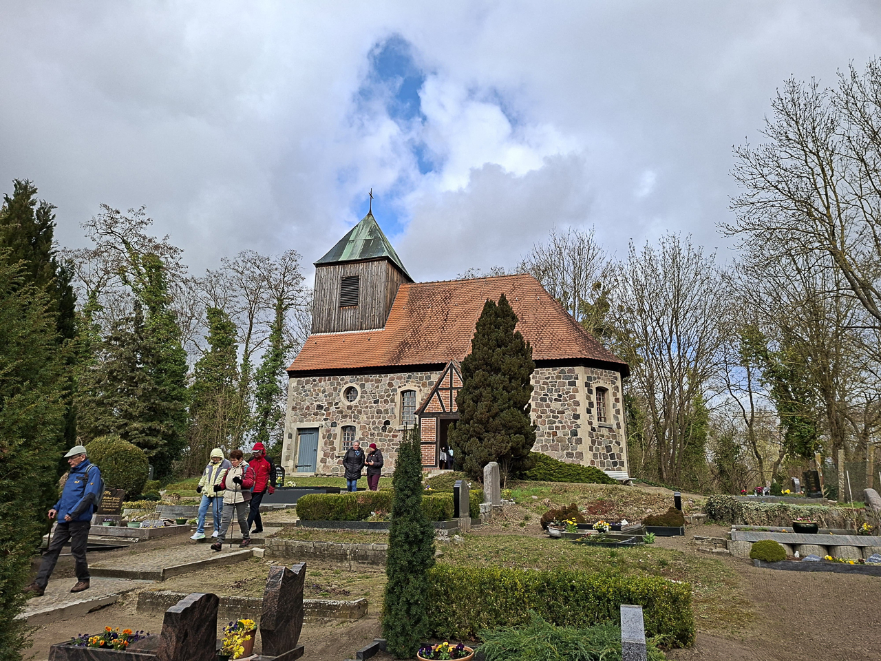 Den Abschluss unseres Wander-Monats bildete eine Tour rund um den Kleinen und Großen Dölschsee. Von Baumgarten aus führte uns Karin Klotz zunächst in die Feldsteinkirche des kleinen Ortes, bevor wir entlang der Ufer durch die erwachende Natur wanderten. Erste grüne Blätter, Vogelgezwitscher und frische Frühlingsluft begleiteten uns auf dem Weg. Ein ganz besonderer Moment war die Beobachtung eines Kranichpaares – ein echtes Naturerlebnis! Selbst ein kurzer Graupelschauer konnte unserer Stimmung nichts anhaben. Umso gemütlicher wurde es anschließend bei Kaffee und einer kleinen Stärkung im „Alten Trafohaus“ in Baumgarten.