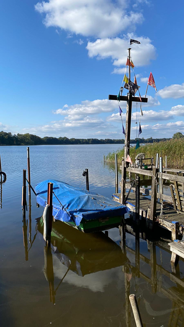 Im Anschluss rafften wir uns alle wohlgenährt auf, denn es stand ja noch der Rückweg an. Dieser führte uns über den Lichtenberger Weg bis nach Seehof. Unterwegs konnte reichlich Obst gesammelt oder gekostet werden. Zu guter Letzt ging es am Ruppiner See entlang durch den Gutspark Karwe, bis wir nach etwa 11 km wieder an der „Kastanie“ landeten.