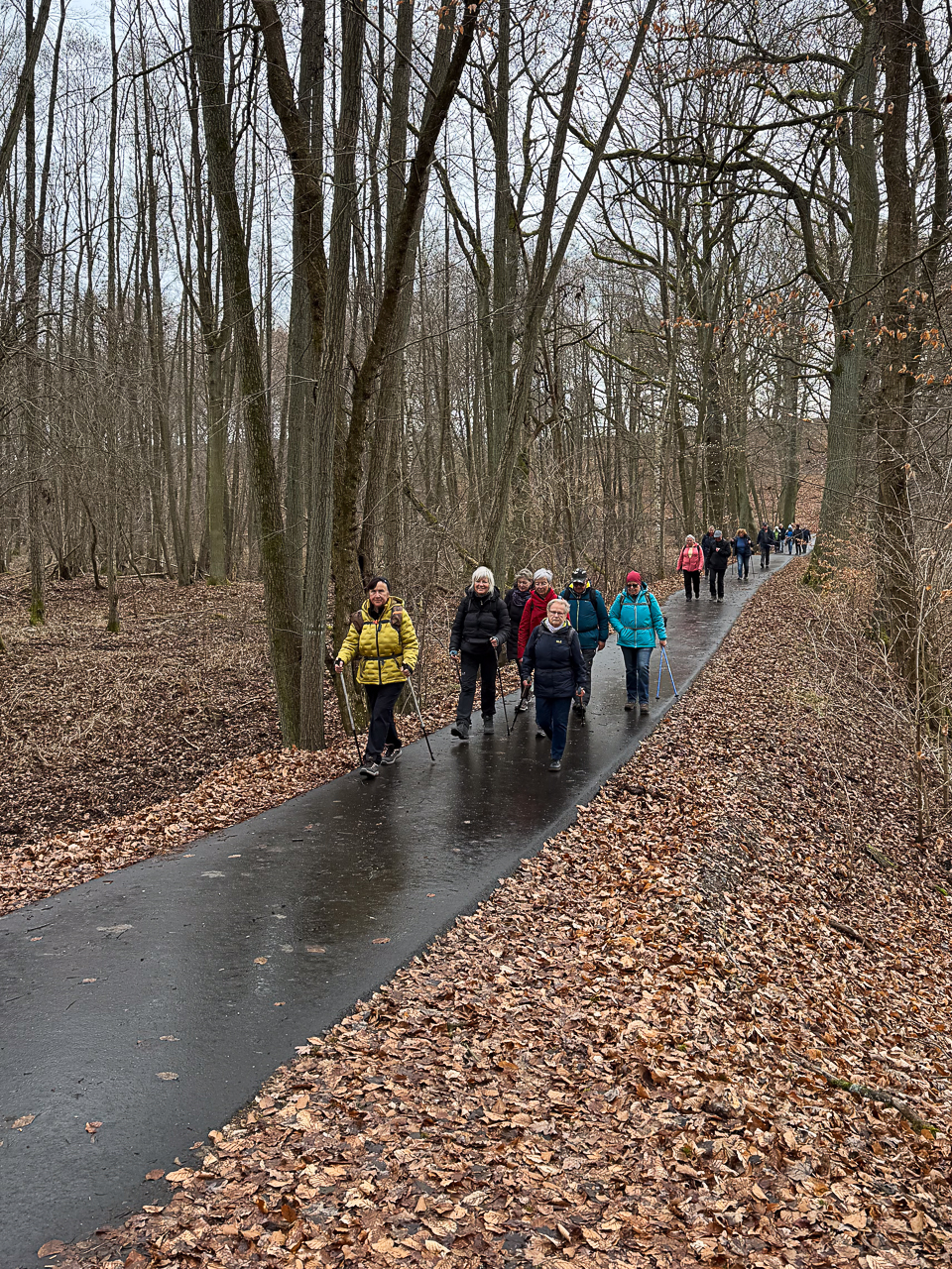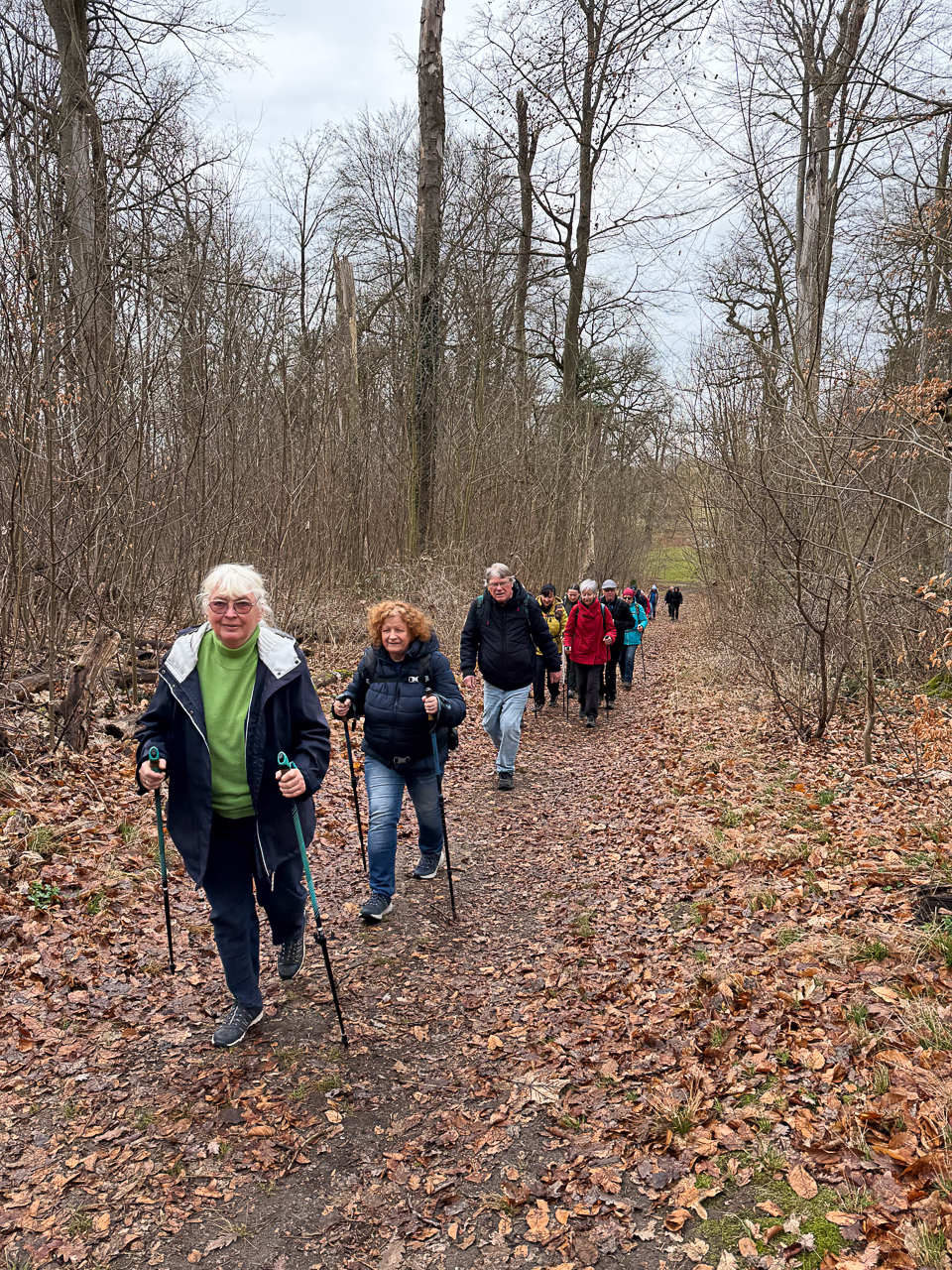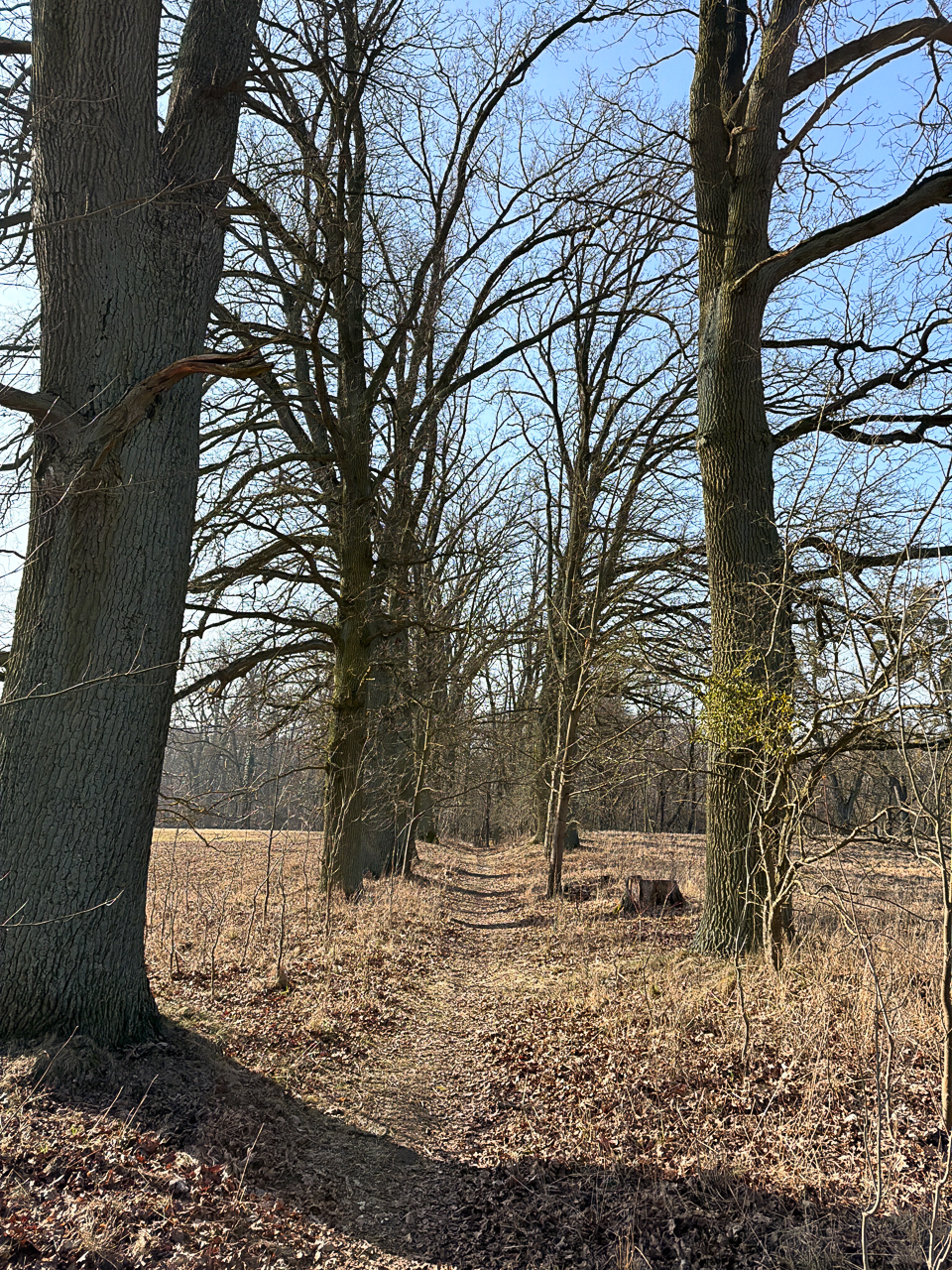 Sehr ruhig ging es auf den Wegen zu: Lediglich zwei Radfahrer und zwei Reiterinnen begegneten uns. Dafür konnten wir mehrfach Dammwild beobachten – sogar ein prächtiger Dammhirsch zeigte sich.