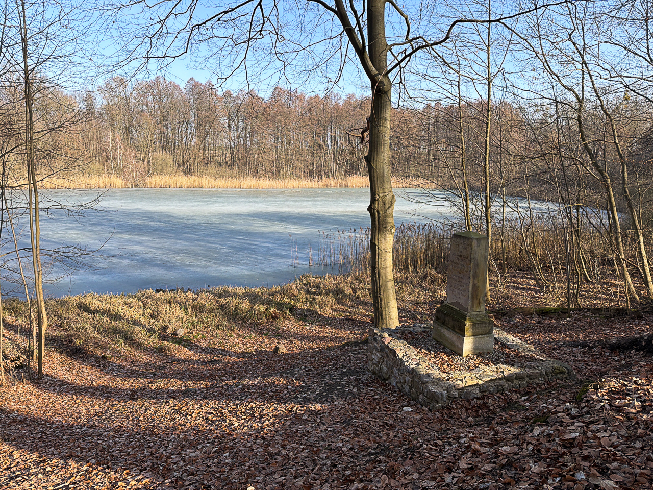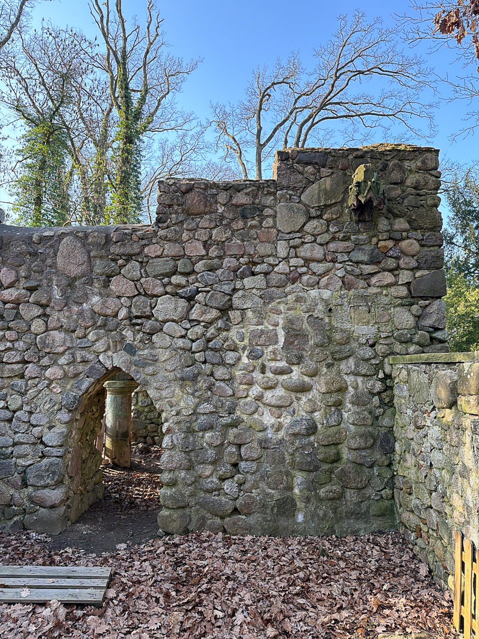 Unterwegs entdeckten wir auch einige besondere Orte, darunter die Rosenburg. Die kleine künstliche Burgruine wurde als Spielanlage für die Kinder des Gutes errichtet und erinnert an die Zeit, in der solche Bauwerke beliebte Gestaltungselemente in Parkanlagen waren.
