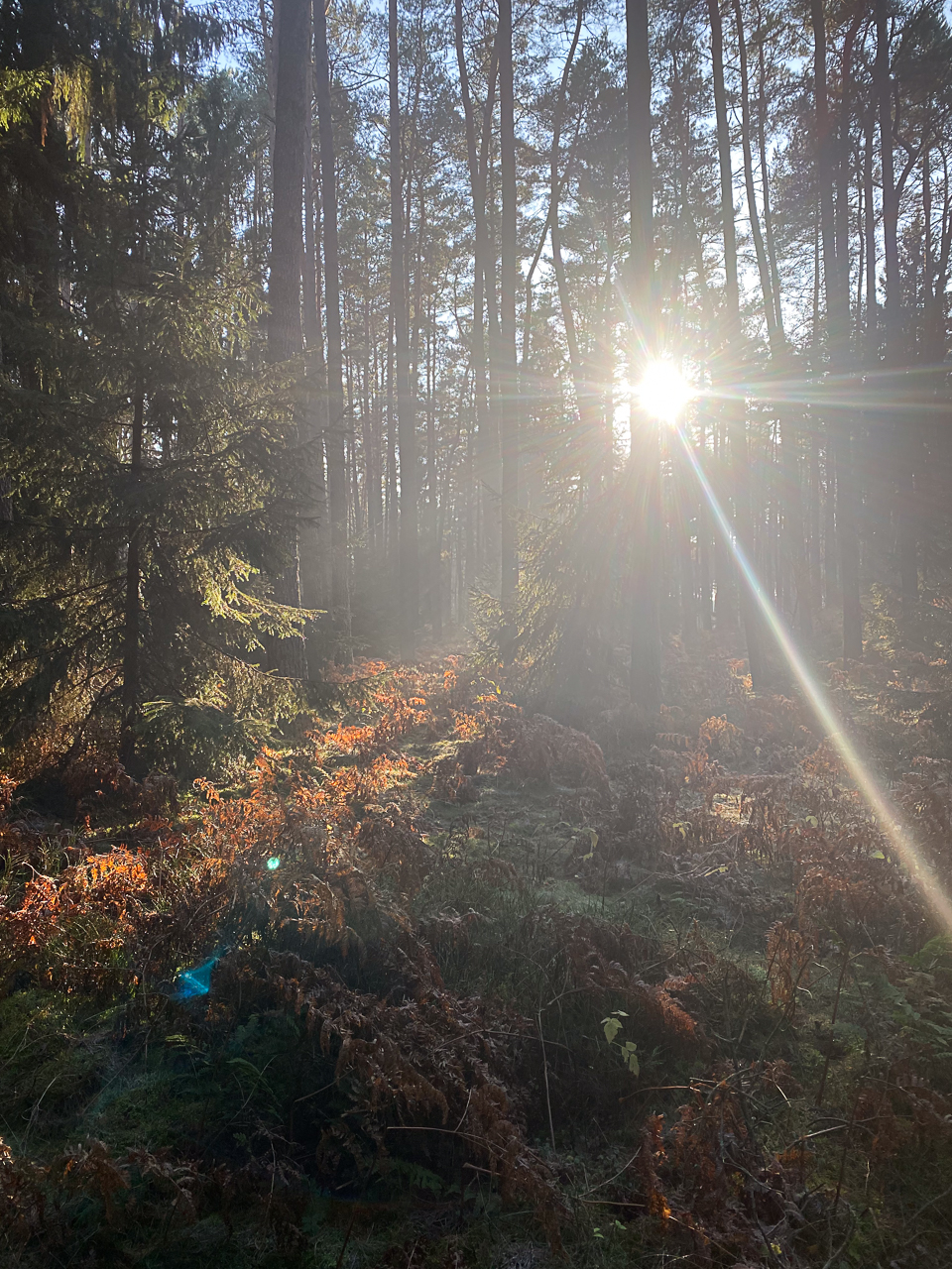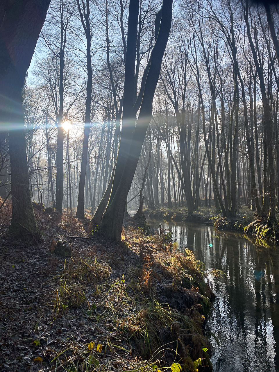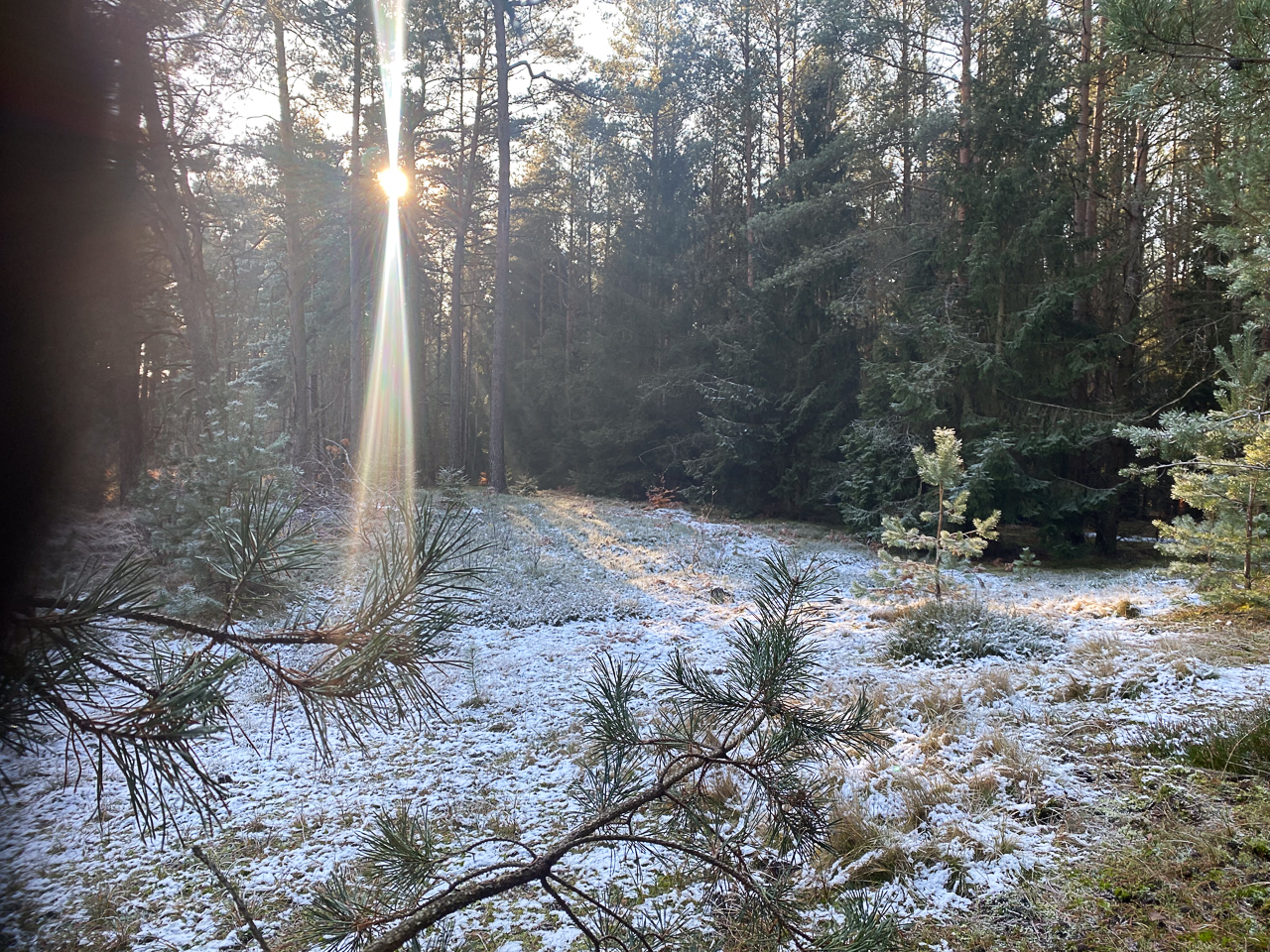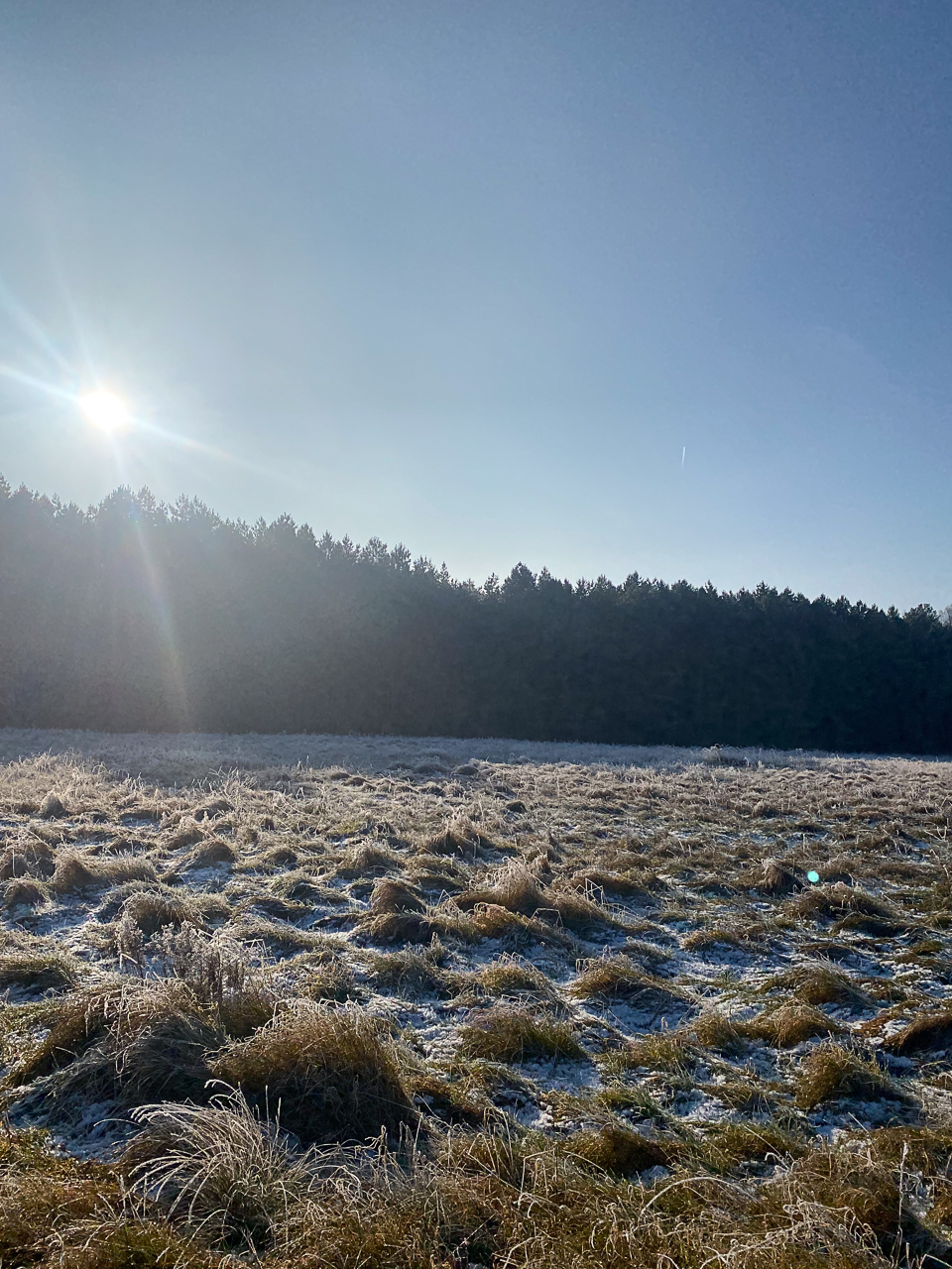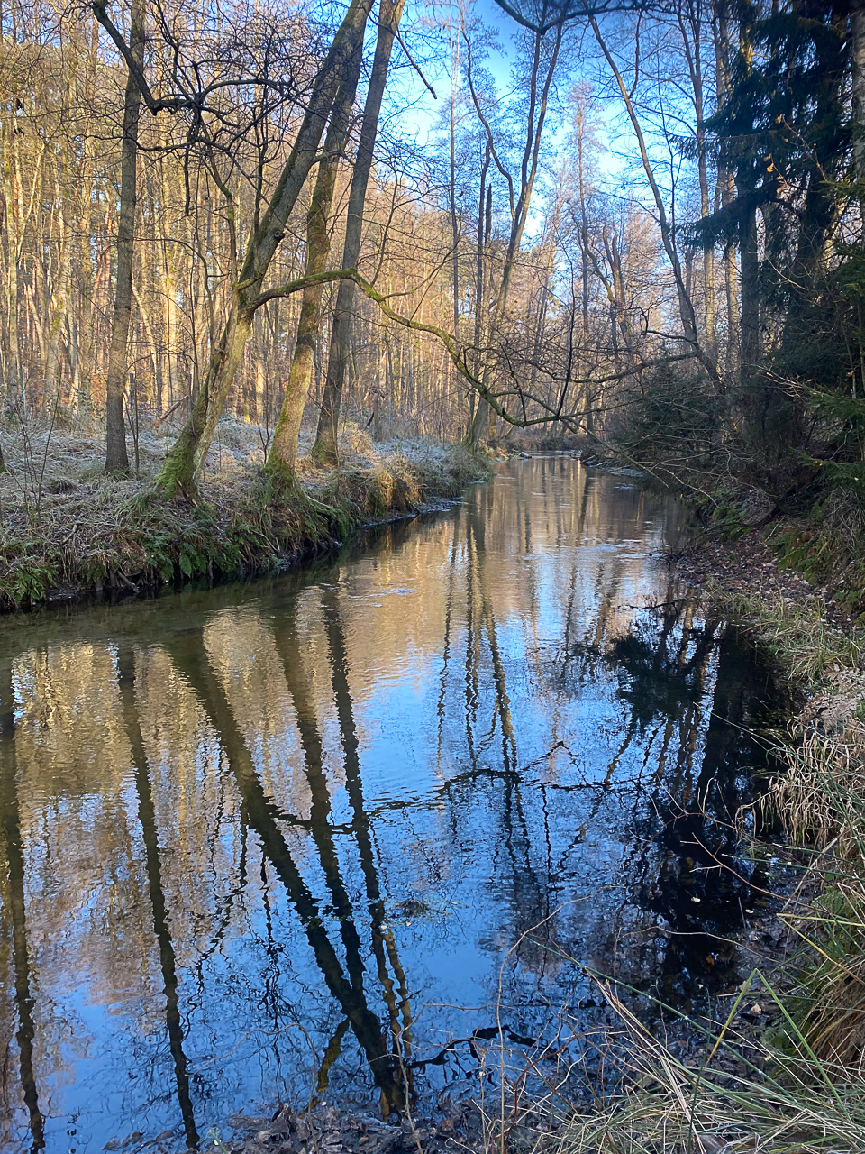 Bei strahlendem Sonnenschein und kaltem Wetter lag ein feiner Frost über Wiesen, Wegen und Bäumen. Die Natur war zart weiß gefärbt, als hätte sie sich ein leichtes Winterkleid übergezogen. Jeder Schritt durch die frostige Landschaft knirschte leise unter den Füßen und verlieh der Tour eine ganz besondere Atmosphäre.