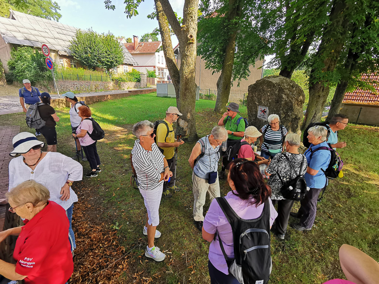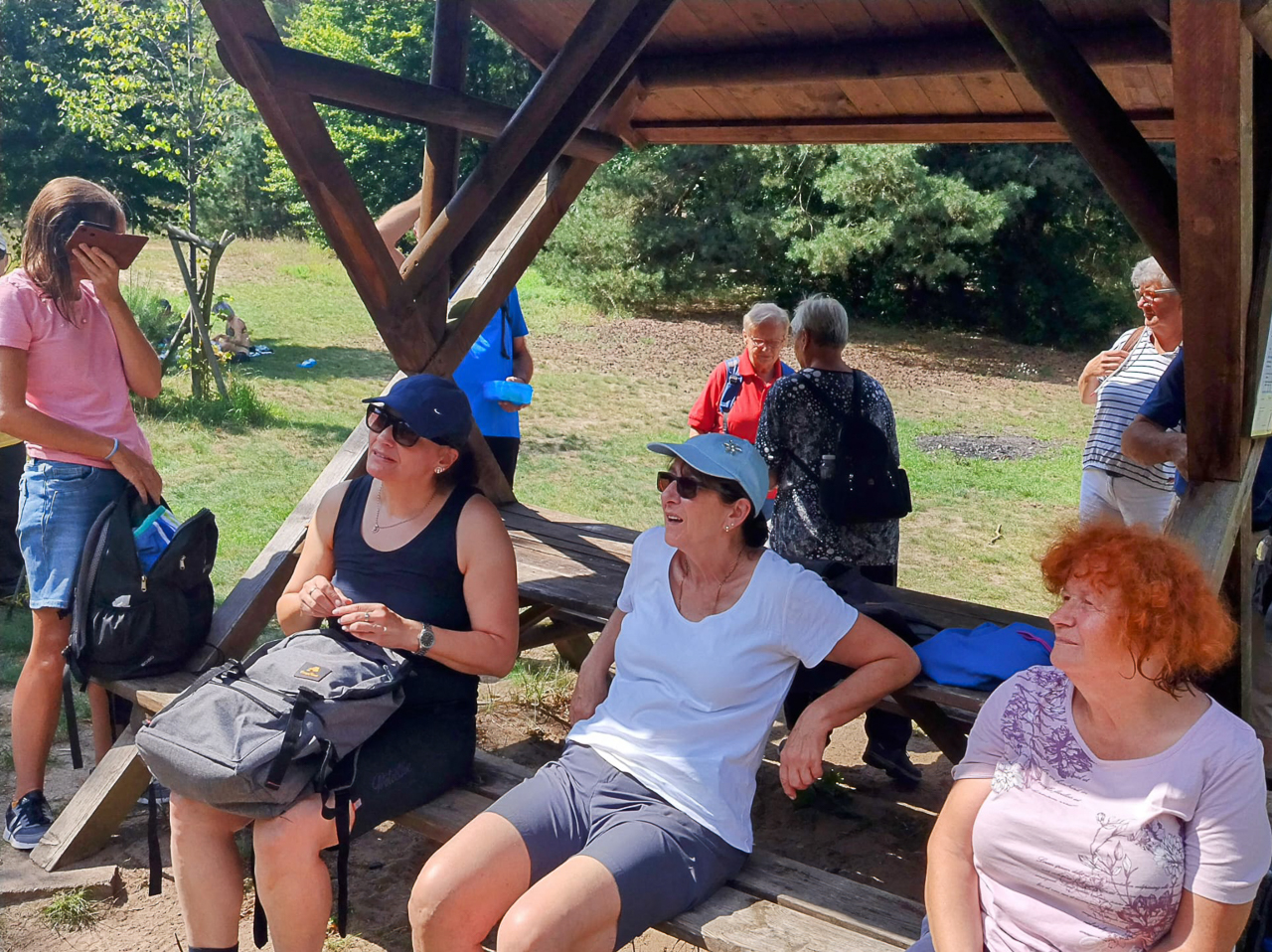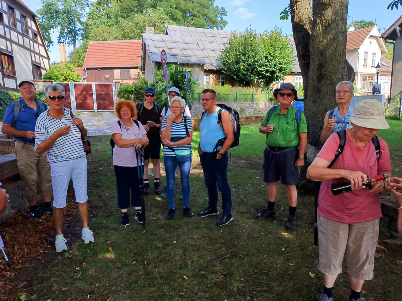 Heute ging es für 18 hitzeerprobte Wanderfreunde nach Flecken Zechlin. Nach einer Stärkung im Schatten der 150-jährigen Kaisereiche und dem Geburtstagsgruß für eine Wanderfreundin, starteten wir den Rundwanderweg um den Schwarzen und den Großen Zechliner See.